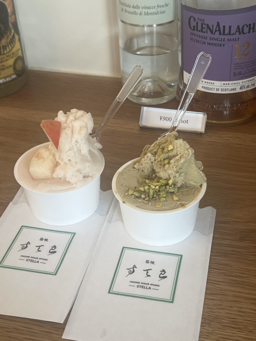 桃とピスタチオのジェラートを食べました( *´艸`)